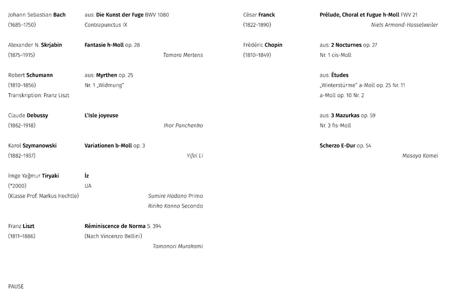 from Johann Sebastian Bach to İmge Yağmur Tiryaki (world premiere)
